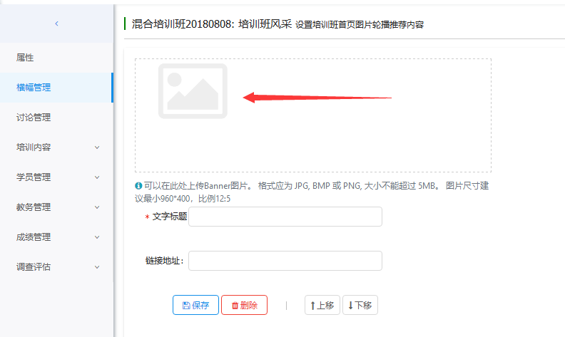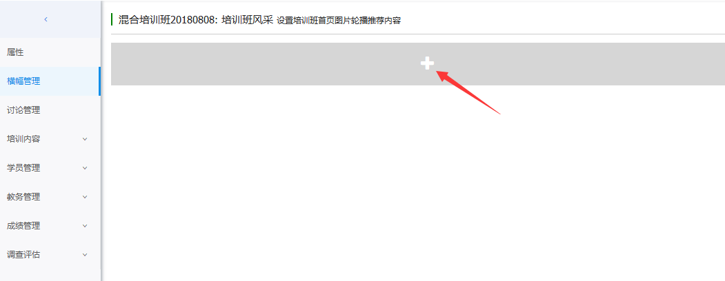 班级横幅是可以在培训班详情页面滚动显示的图片。点击图中的'+'号,添加一个图片及说明。