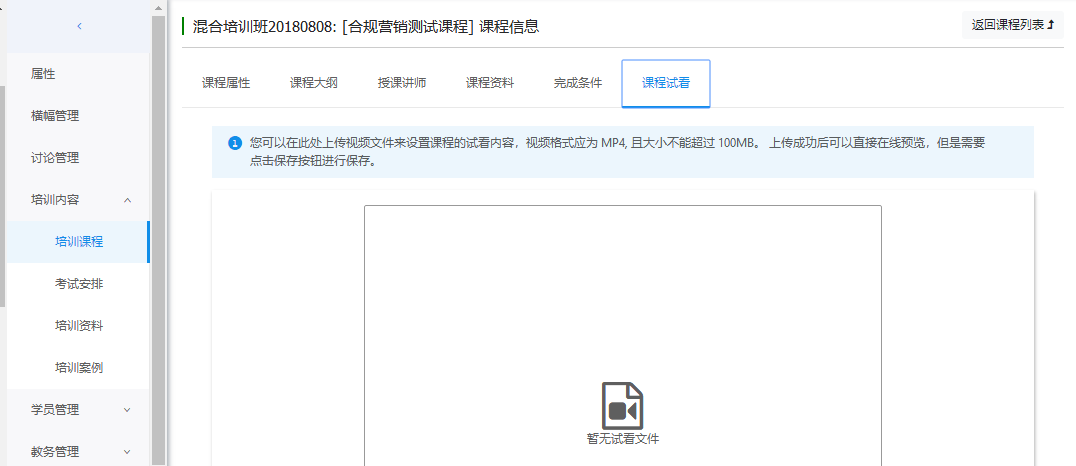 可以上传课程宣传视频,用于让学员试看。