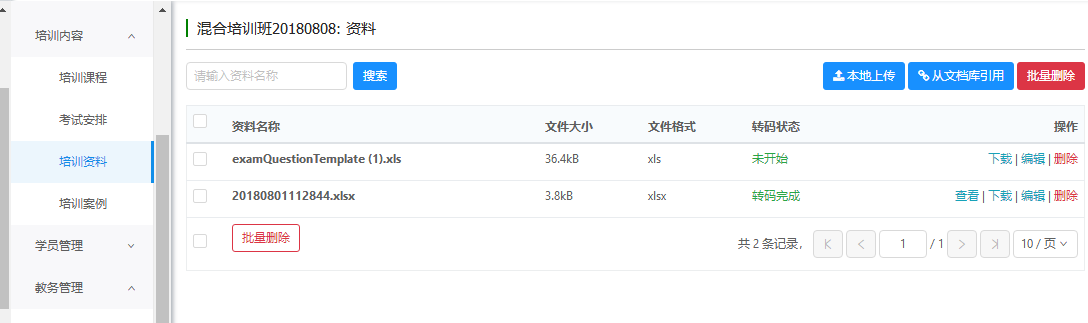 支持资料的添加(本地上传、从文档库引用)、编辑、删除、下载等操作。