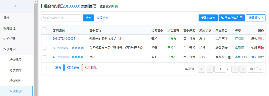 支持案例的添加(本地上传、从案例库引用)、编辑、删除等操作。