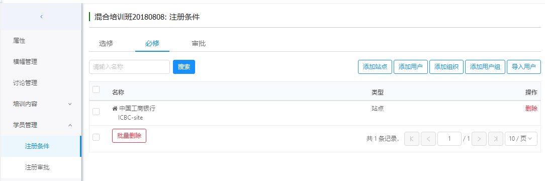必修注册:管理员直接将人员注册到当前活动,学员可以在学员端直接进入活动。