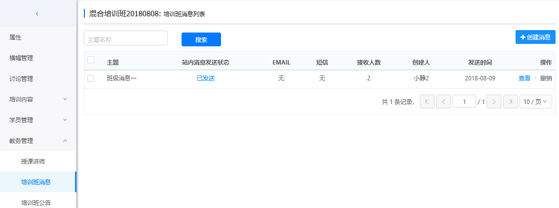培训班消息列表点击"创建消息",进入到消息属性页面。