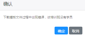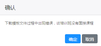 点击"下载模板",若培训班中没有面授课程,会出现提示。